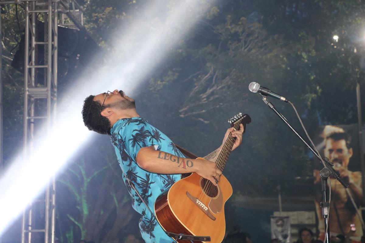 Quem também subiu ao palco foi Bauxita, outra atração diretamente da capital mineira. O cantor aqueceu os presentes com mais clássicos do rock, como a conhecida ‘Sweet Child O' Mine’, do Guns N’ Roses.